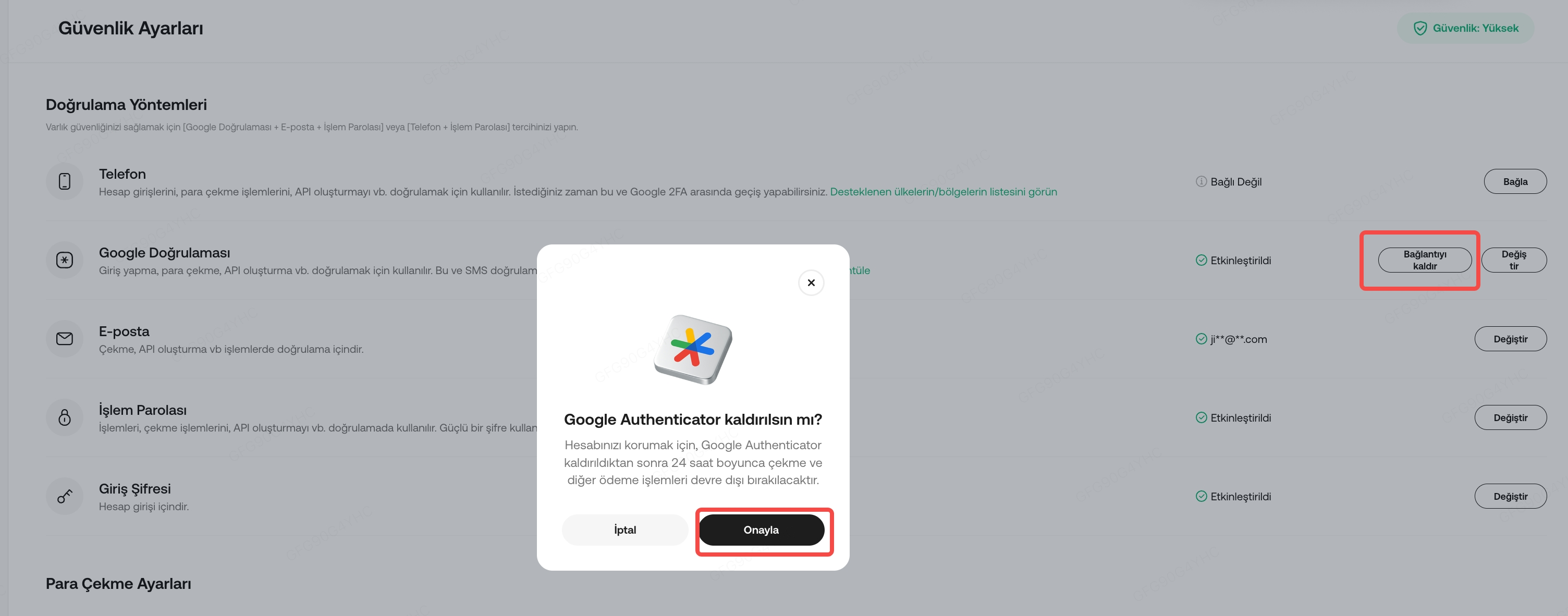b. Varlıklarınızı korumak için 2FA ayarlarınızı güncelledikten sonra 24 saat boyunca çekimler devre dışı bırakılacaktır.