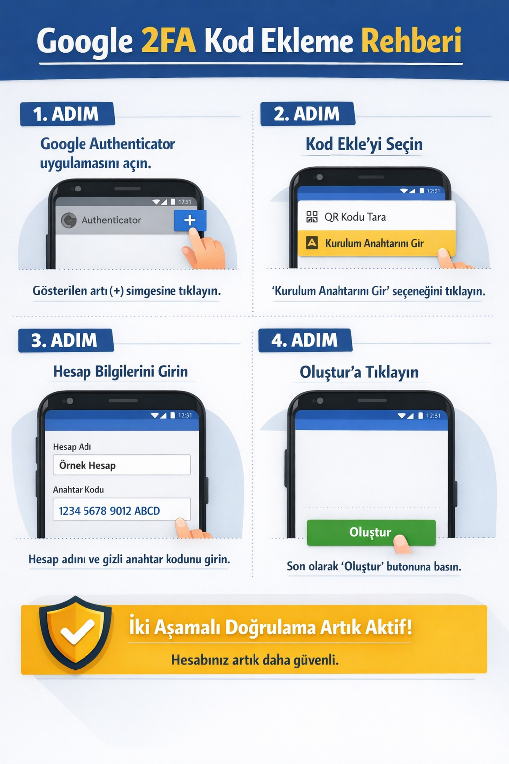 1.1 Kaydedilen Google Kurulum Anahtarını Kullanarak 2FA'yi Yeniden Bağlayın